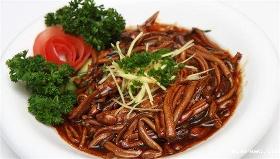 Introduction: the south region of the lower reaches of the Yangtze River boasts of eels which can be found in rivers even in ditches of the farmland. There are a lot of dishes with eels as main material such as Thorny Eel Rolls, fried sliced eels, quick-fried shredded eels. This dish is known for its sizzling sound (pi-pa). To cook this dish, firstly you need to put the living eels in the boiling water, shred the eel. Meanwhile, you cook the oil in the pot to medium rare, add some shredded onions, stir-fry shredded eel in that pot, and smolder it with Shaoxing rice wine for a short while. Then you add hot soup and continue to boil it. About 2 minutes later, you add some refined salt, soybean sauce and sugar and continue to smolder it in the capped pot. Ten minutes later when the soup in the pot becomes sticky, you add some wet starch and put the dish on the plate. Then you groove in the middle of the dish, put some shredded onion in it and decorate the periphery of the dish with shredded gingers, minced onions and ham. Meanwhile, you need to heat the sesame oil to medium well in another pot, then you pour the sesame oil into the groove. After that, it must sent to the table immediately and scattered with some pepper, which needs the close cooperation between the chef and waiters or the guests will be disappointed at the absence of sizzling sounds.