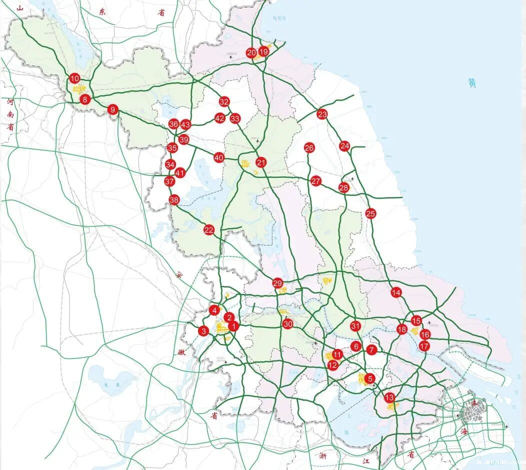 1.由北往南方向:南京二桥、沪苏通大桥、苏通大桥,G2京沪高速扬州段,G15沈海高速盐城段,G25长深高速常州段,S39江宜高速常州段,S49新扬高速盱眙段。